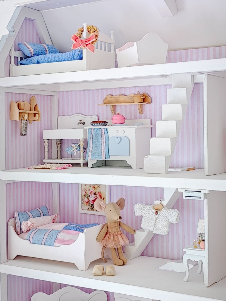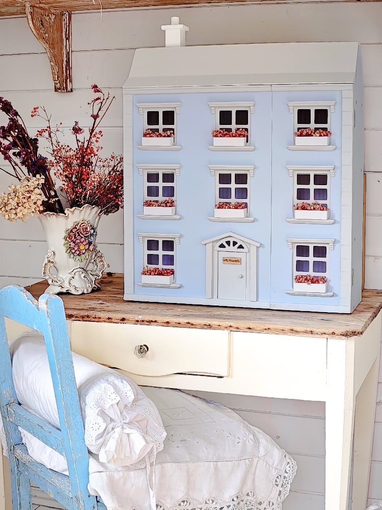 Discover this charming and unique dollhouse, meticulously designed with exceptional attention to detail and finished in delicate shades of blue and pink.