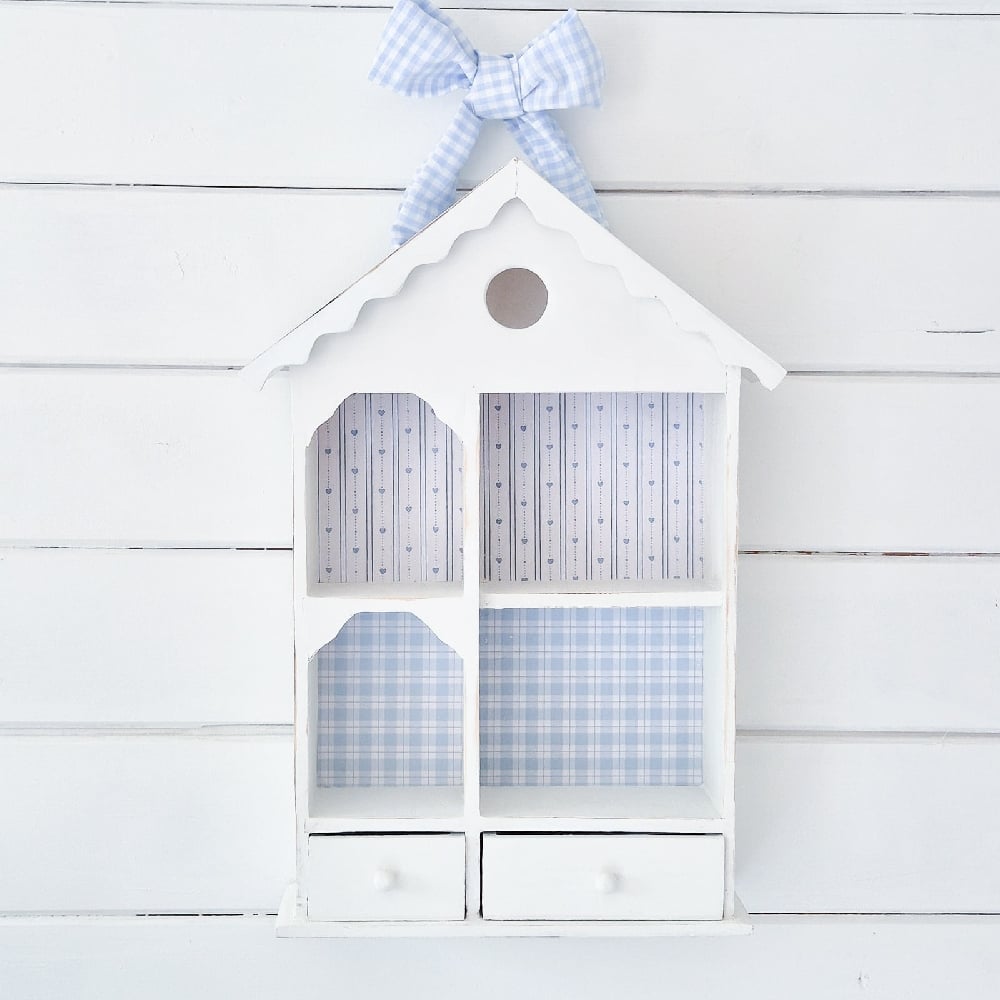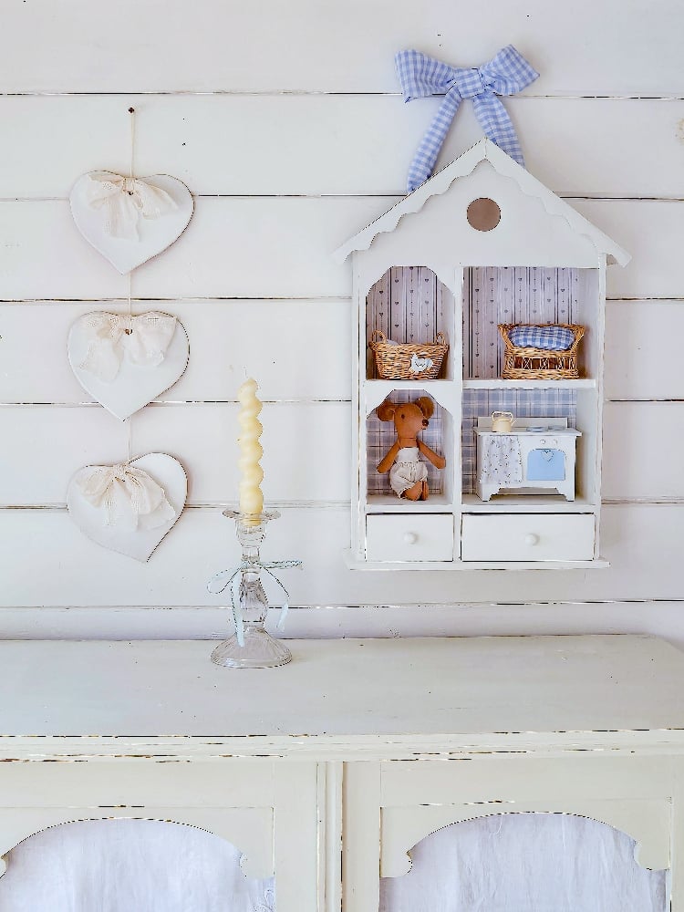 Estantería decorativa cocina con lazo, realizada en madera. Se vende únicamente la estantería accesorios no incluidos