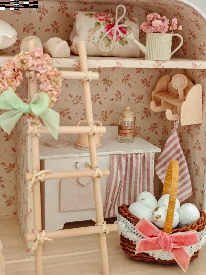 This dollhouse in a traveling suitcase is an original creation made with love. Each one is unique, and this particular one will not be made again, so you will have a very special piece!