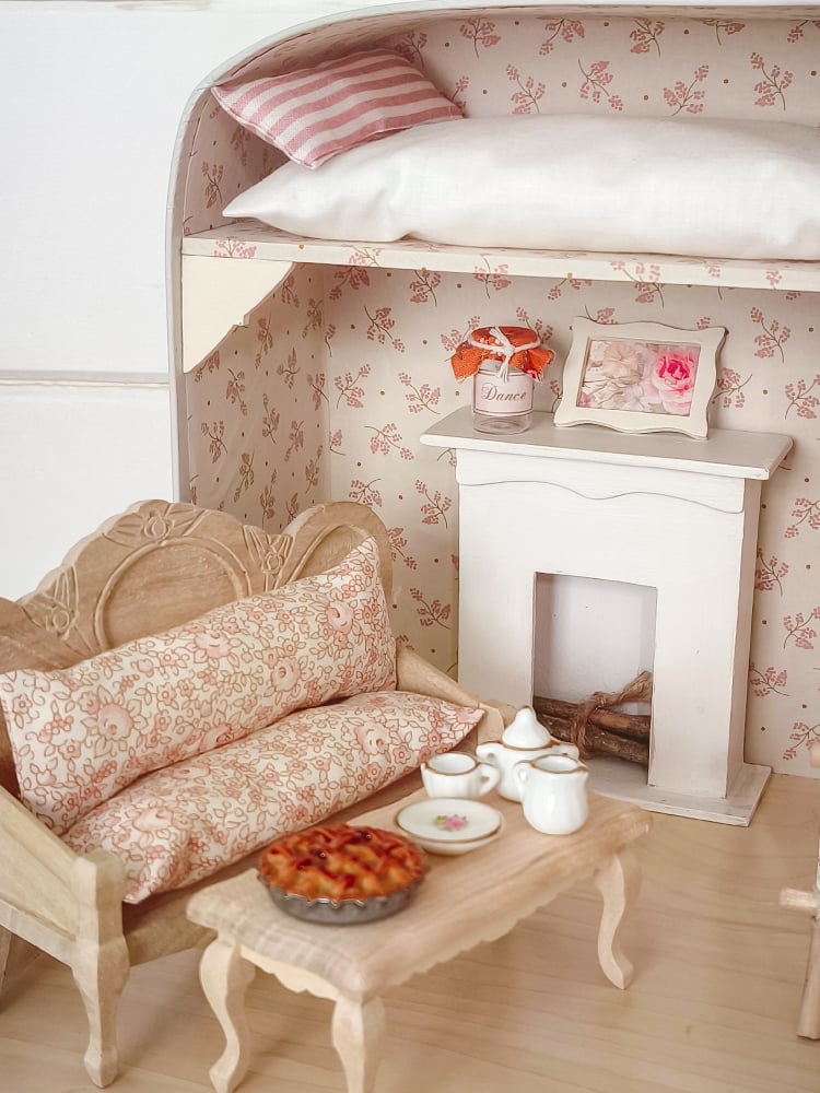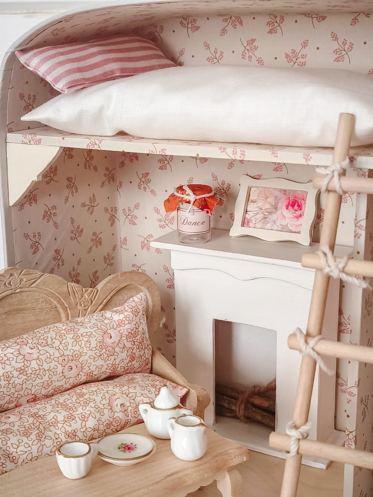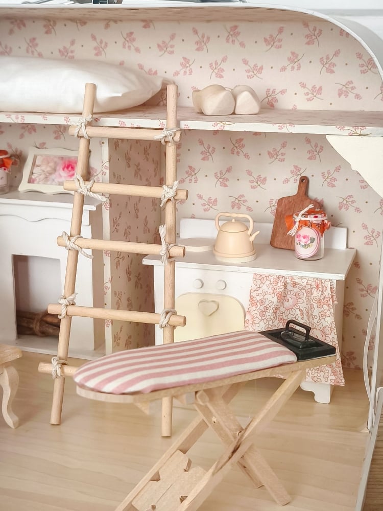 This dollhouse in a traveling suitcase is an original creation made with love. Each one is unique, and this particular one will not be made again, so you will have a very special piece!