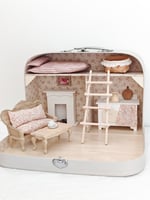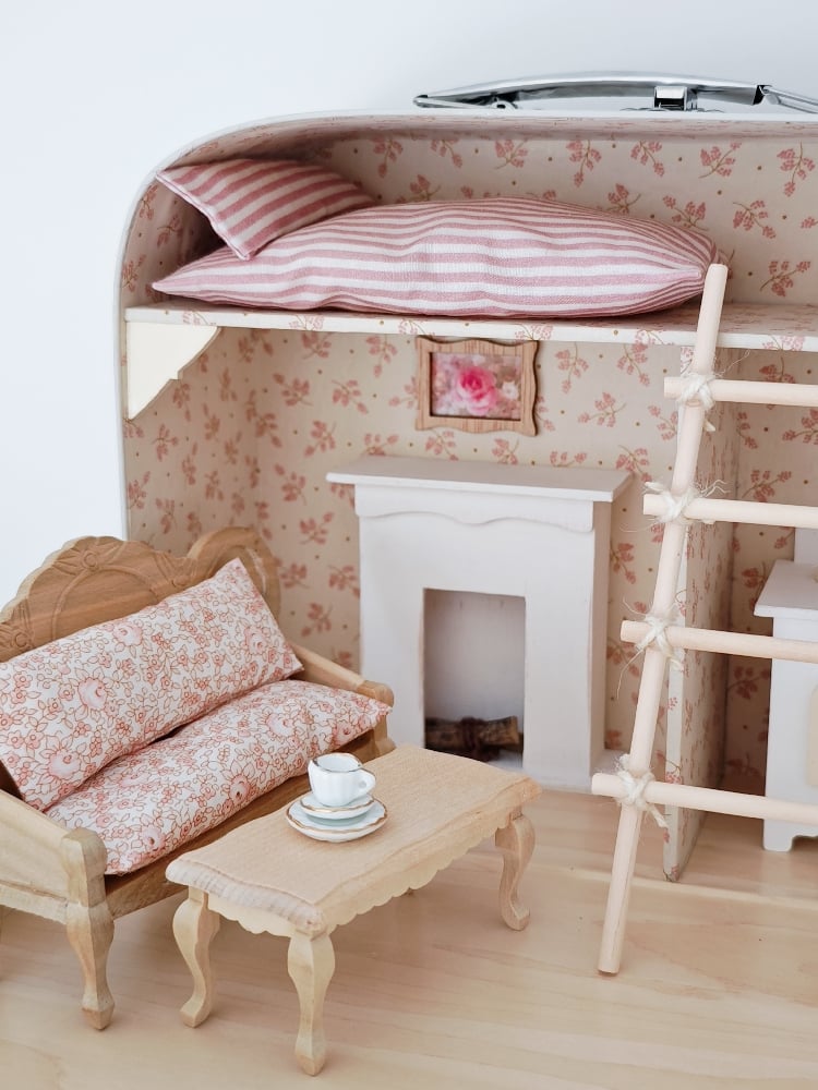 Medidas de la maleta cerrada:Ancho: 30 cm.Altura: 20 cmProfundidad: 9.5 cmSe hacen envíos a punto de recogida.Canarias consultar tarifas de envío.This suitcase is made to order within a period of 7 days. If you need it by an earlier date, please contact me via the contact form or Instagram direct message.Discover the magic of this charming dollhouse in a travel suitcase! Perfect for playing or decorating a special corner, this beautiful little house is a miniature world that offers elegance and fun.All furniture and accessories are included. It consists of a small bag for storing the utensils and a large bag for storing the suitcase.The dolls are not included.Closed Suitcase Measurements:Width: approximately 11.8 inchesHeight: approximately 7.9 inchesDepth: approximately 3.7 inches.We ship via Punto Pack to destinations within Europe only. Shipments to the United States will be made to the home address. For shipments outside of Europe, or to European locations where Punto Pack is not available (such as islands), please inquire about ratesor any customs fees or taxes that may apply.